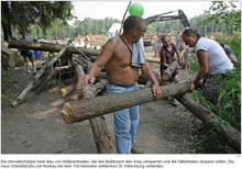 Am Donnerstag rückten sie dann sogar Premierminister Wladimir Putin auf den Leib. 50 Aktivisten marschierten vor das "Weiße Haus" an der Moskwa, den Sitz der russischen Regierung. Medienwirksam schleppten sie Baumstämme mit sich - "Brennholz aus Chimki" - dass sie zusammen mit einer Petition Putin übergeben wollten.