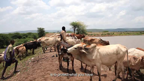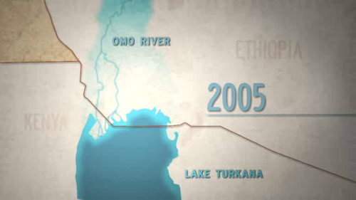 The video focuses on four groups of pastoralists — the Turkana of Kenya and the Dassanech, Nyangatom, and Mursi of Ethiopia — who are among the more than two dozen tribes whose lives and culture depend on the waters of the Omo River and the body of water into which it flows, Lake Turkana. For the past 40 years at least, Lake Turkana has steadily shrunk because of increased evaporation from higher temperatures and a steady reduction in the flow of the Omo due to less rainfall, increased diversion of water for irrigation, and upstream dam projects. As the lake has diminished, it has disappeared altogether from Ethiopian territory and retreated south into Kenya. The Dassanech people have followed the water, and in doing so have come into direct conflict with the Turkana of Kenya.