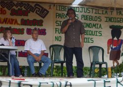 Dr. Anaya erläuterte seine Rolle und dass er seit einem Jahr Berichte indigener Organisationen empfangen habe, die über die Rechtsverletzung indigener Bevölkerung berichten und ihn nach Terraba einluden. Daraufhin hätte er beschlossen, die Lage vor Ort zu überprüfen, weshalb er mit der Regierung Costa Ricas in Kontakt trat, die ihn darauf hin offiziell einlud. Zwischen dem auf Papier verbrieften Recht der Indigenen auf Selbstbestimmung und der Realität bestehe ein großer Unterschied, was den Kampf der indigenen Bevölkerung erkläre. Dr. Anaya bot seine Hilfe zur Durchsetzung der indigene Selbstbestimmung an. Seinen Bericht mit der Analyse, Beobachtungen und Ratschläge für den costaricanischen Staat, wird Dr. Anaya im September dieses Jahres dem Komitée für Menschenrechte der Vereinten Nationen vorgelegen.