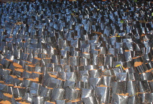 In diesen Beuteln sollen die Samen für künftige Bäume vorgezogen werden. Ein paar Monate später werden sie dann an ihren endgültigen Standort verpflanzt.