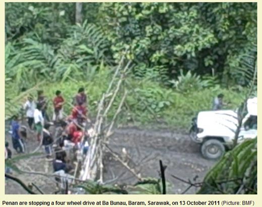 Protest in SarawakZwei vom Holzeinschlag durch die Firma Interhill betroffene Penan-Dorfgemeinschaften haben eine Straßenblockade errichtet, um den Holzeinschlag in ihrem Wald im mittleren Baramgebiet zu unterbinden. Interhill, mit Sitz in Miri, Sarawak, ist früher schon durch eine zerstörerische und rücksichtslose Holzgewinnung aufgefallen und hat immer wieder Protestaktionen provoziert.